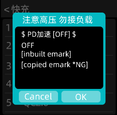 注意: 切勿按OK键上电(检测、诱骗协议 会黑屏)